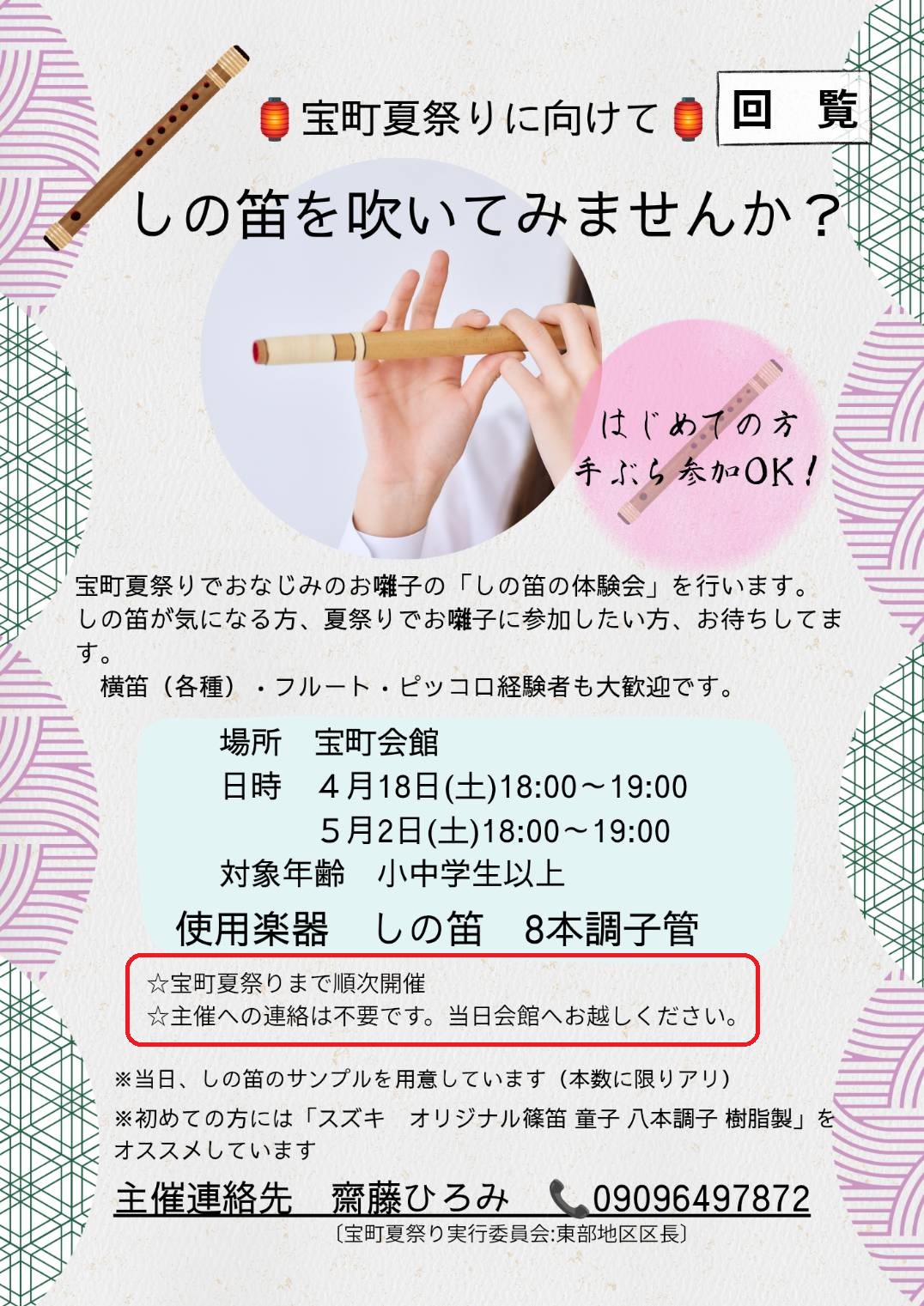 お囃子しの笛体験会